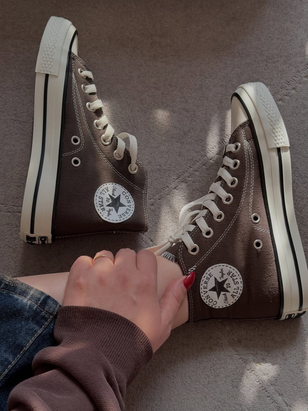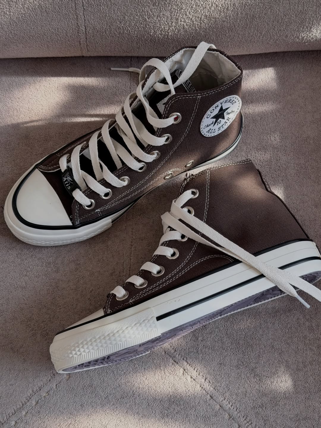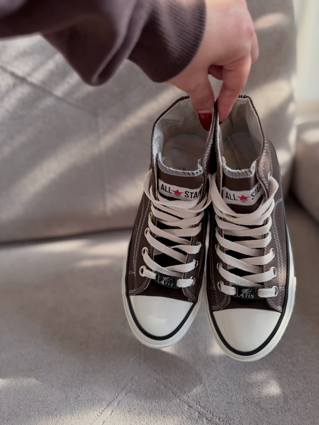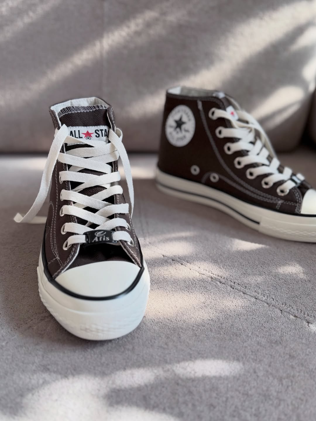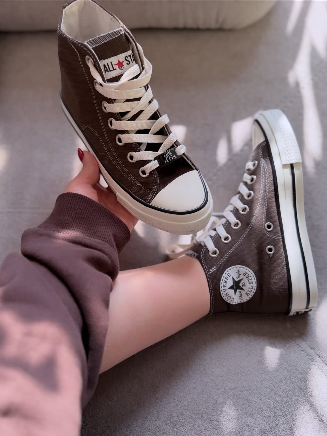 کفش آل استار قهوه ای مخصوص پاییز با رویه جین و کیفیت خیلی بالا